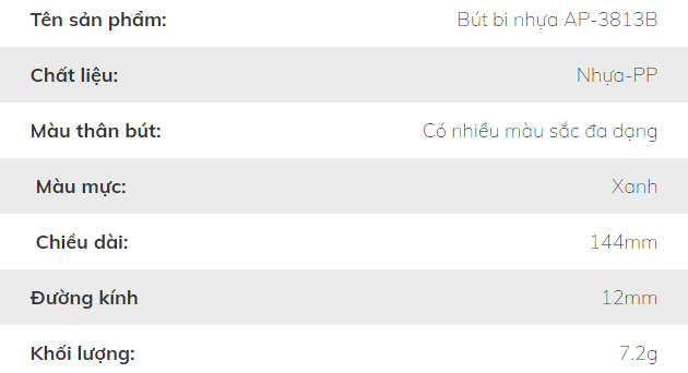 Với mức giá hợp lý, thiết kế bắt mắt và khả năng in ấn sắc nét, bút bi AP-3813B là lựa chọn lý tưởng cho các doanh nghiệp, trường học, khách sạn, tổ chức sự kiện muốn tìm một sản phẩm vừa hữu ích vừa quảng bá thương hiệu hiệu quả.