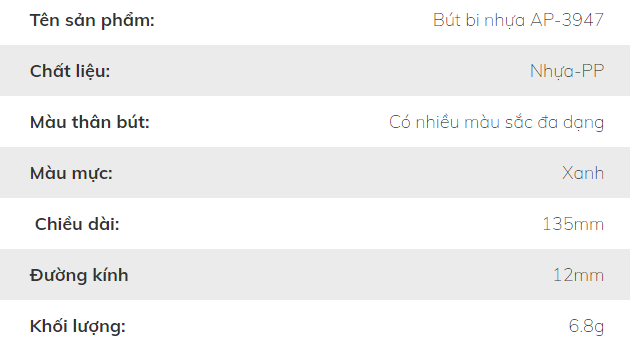 Đặc điểm nổi bật của bút bi nhựa AP-3947